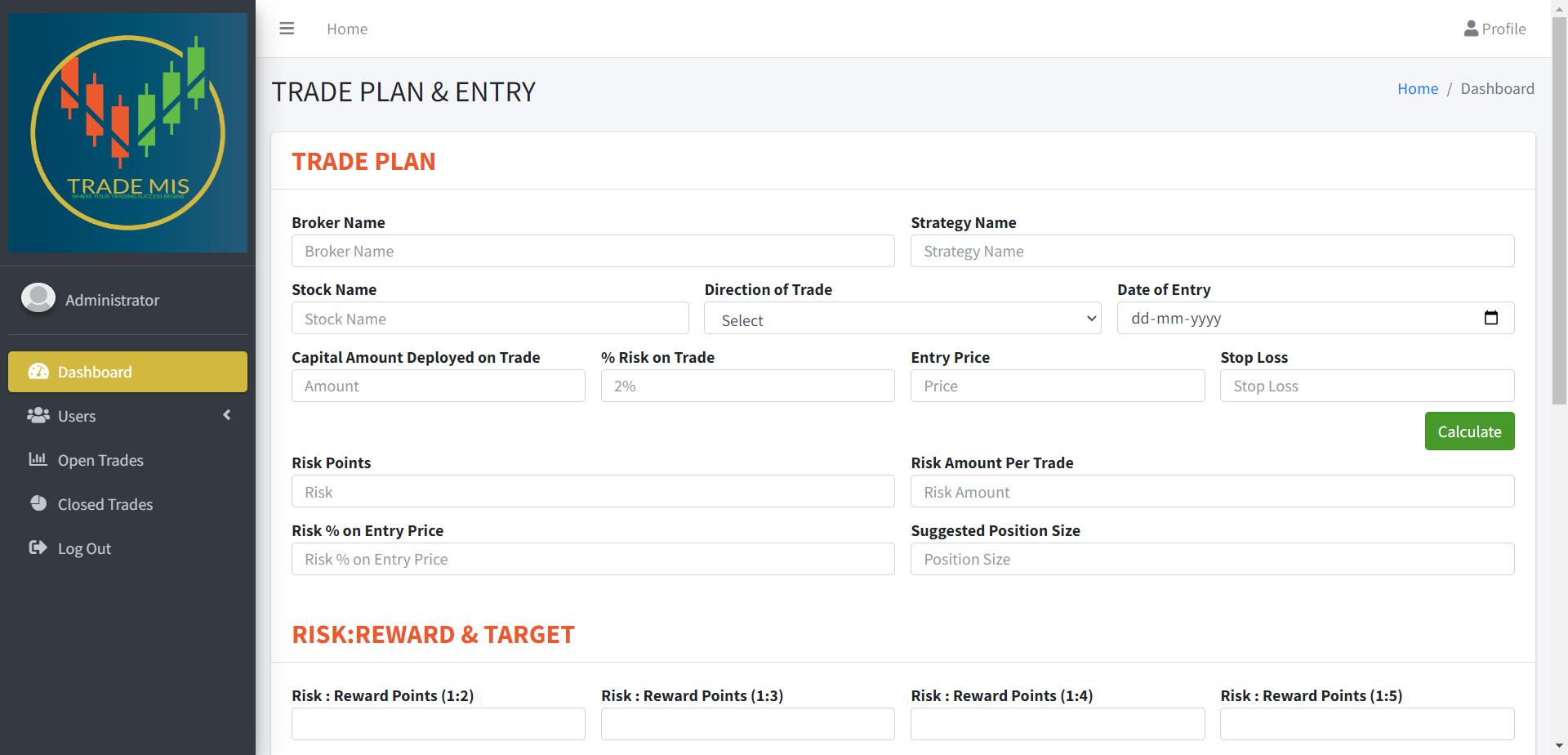 Successful trading begins with a well-thought-out plan. With Trade MIS, you can effortlessly create and manage your trade plans based on proven risk management and position sizing strategies. Our intuitive interface guides you through the process, ensuring you make informed decisions before entering any trade.